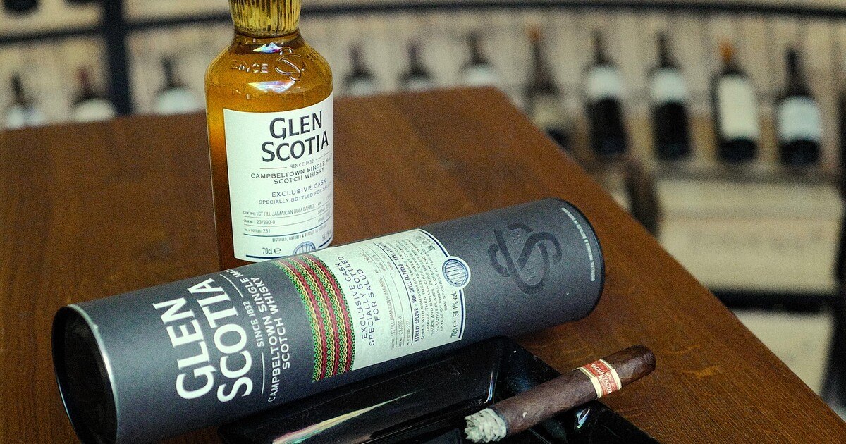 Einmal mehr profitieren die Whiskys der Region aber von „zigarrenfreundlichen“ Fass-Reifungen. Das beste Beispiel wurde 2024 exklusiv von „Glen Scotia“ für den österreichischen Markt abgefüllt. Doch eigentlich wurde das „Exclusive Cask“ praktisch für alle Raucher gemacht, die ausdrucksstarke Schokolade-Aromen mögen. Das Einzelfass ergab zwar nur 231 Flaschen, doch diese beinhalten sieben Jahre alten Whisky, der sechs Monate in einem ausdrucksstarken Rum-Fass nachreifte. Dieses kam aus Jamaica und hat die typischen Fruchtester-Noten auf den Single Malt übertragen. Vanille und Rumtopf, wohlgemerkt bei 56,1% Vol., sind zu schmecken. Sie komplettieren etwa kräftigere Honduras-Formate wie Oscar Valladares „Altar Q Toro“. Da darf es aber auch ein bisschen Wasser zum Zähmen des Whiskys sein.